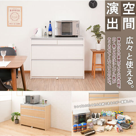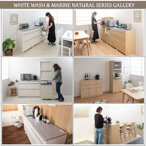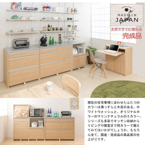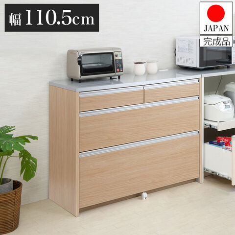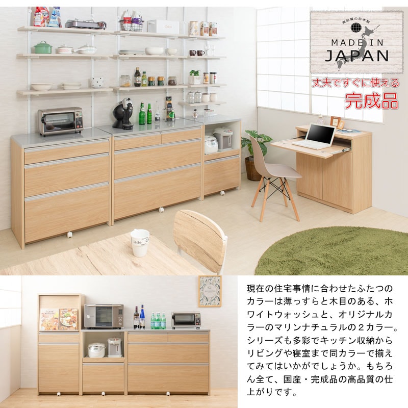 日本製 完成品 キッチンカウンター 幅110.5 マリンナチュラル アンティーク 北欧 カウンター 引き出し キャスター付き 鏡面仕上げ 木製 木目調 おしゃれ 北欧 大容量 国産 ワイド 収納【送料無料】