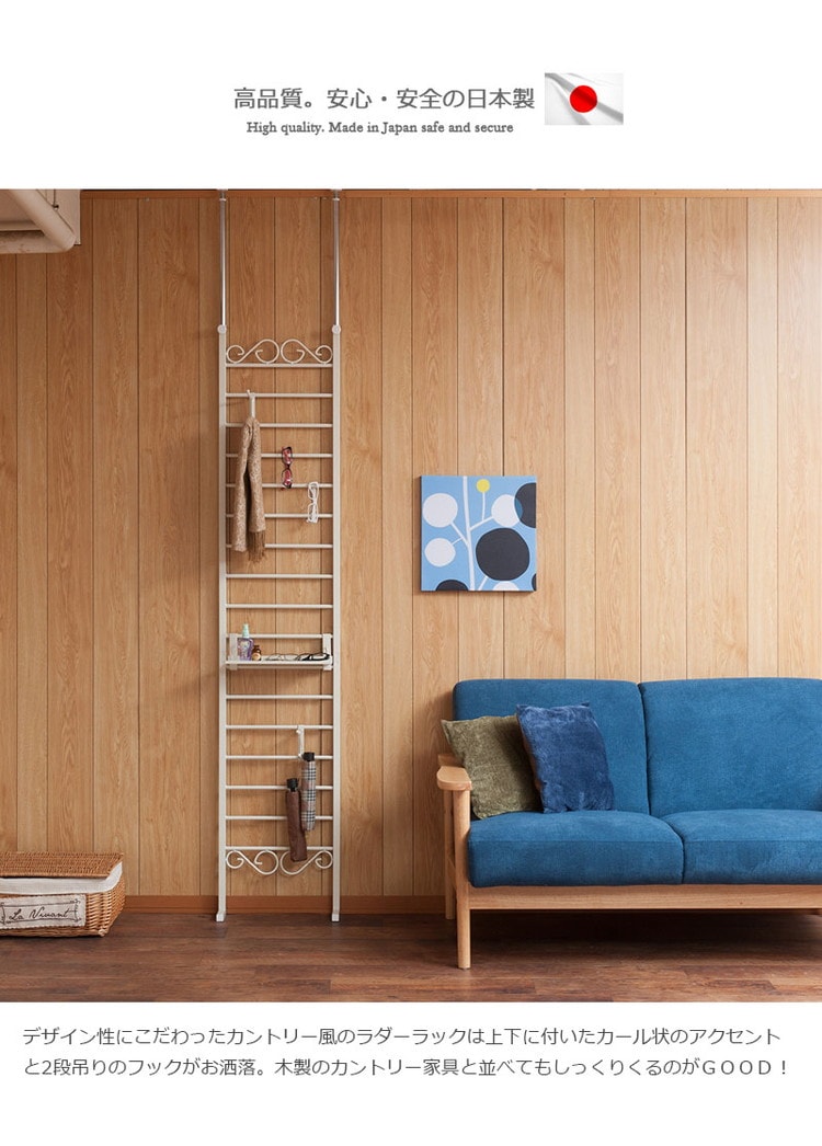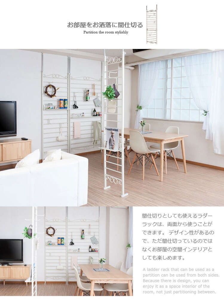 Curly ラダーラック 突っ張り パーテーション 幅40 アイボリー 日本製 店舗 什器 メルヘン ディスプレイ 衣類収納 ワードローブ ラダー パーテーション パーティション つっぱり【送料無料】
