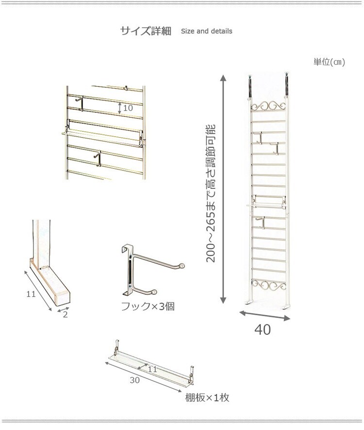 本体:(約)幅40×奥行11(脚部)×高さ200~265cm