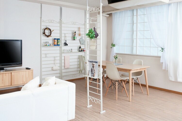 間仕切りや壁面使いと玄関・リビングなどあらゆるシーンにはまるカーリーパーテーション。