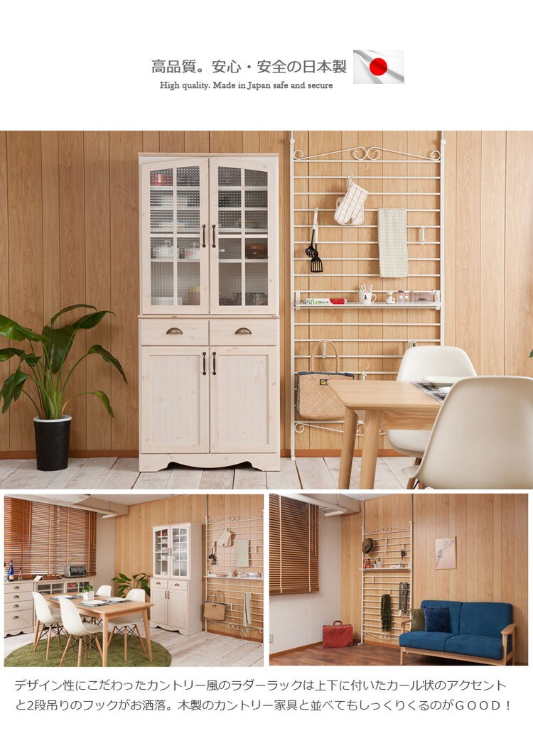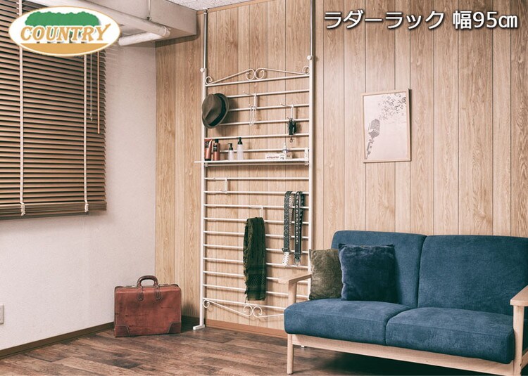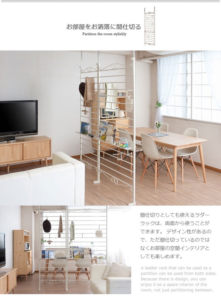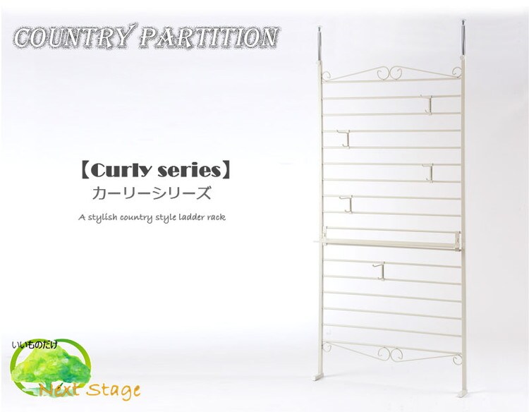Curly ラダーラック 突っ張り パーテーション 幅95 アイボリー 日本製 店舗 什器 メルヘン ディスプレイ 衣類収納 ワードローブ ラダー パーテーション パーティション つっぱり【送料無料】