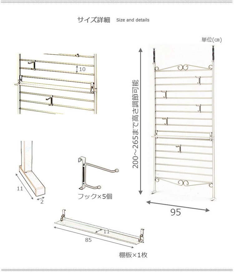 本体:(約)幅95×奥行11(脚部)×高さ200~265cm