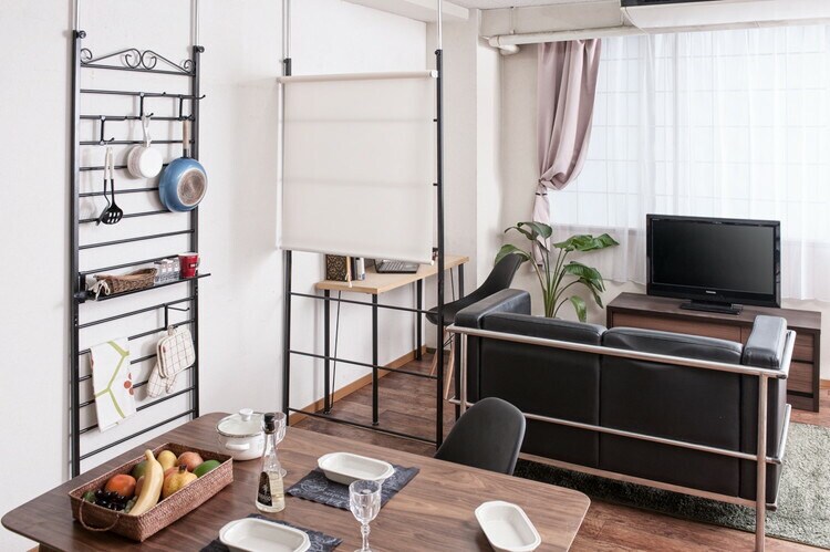 インテリアを重視したパーテーションはラダー状でおしゃれな印象。ショップやカフェ風で光がラダーのすきまから差し込み明るく間仕切れます。