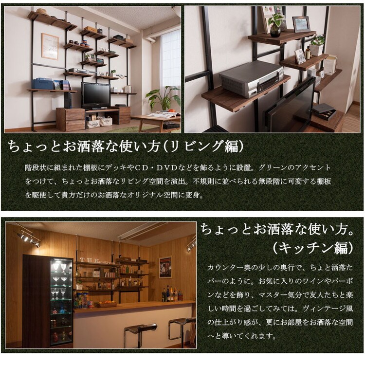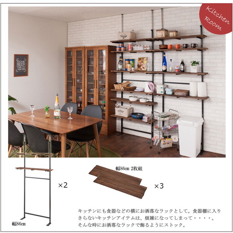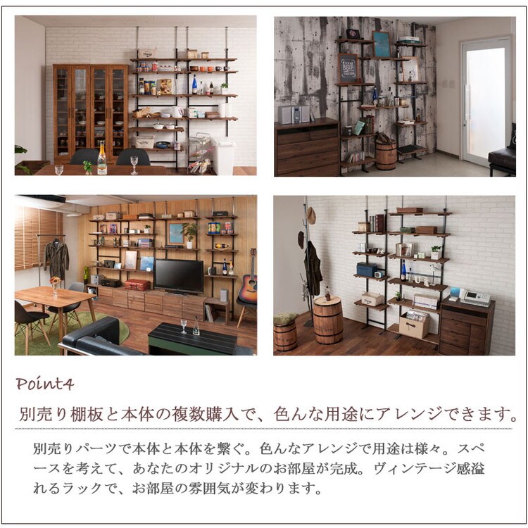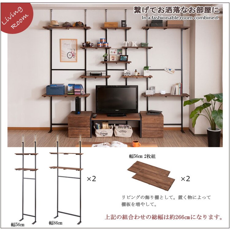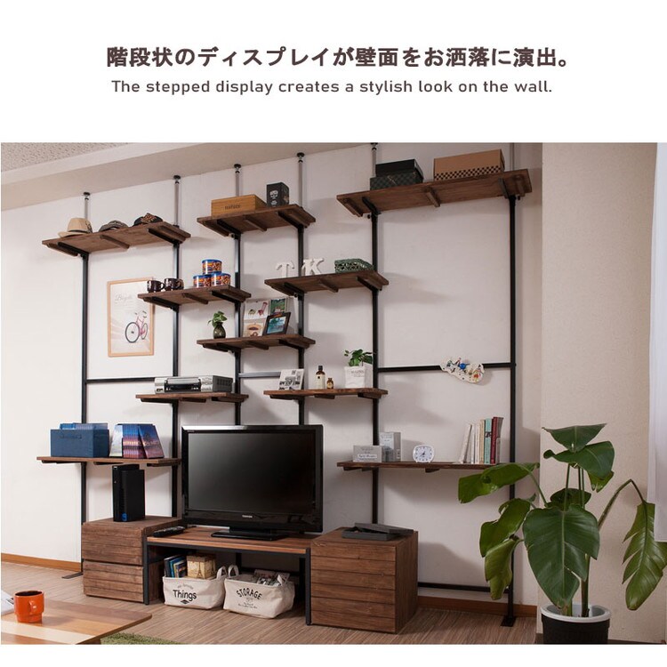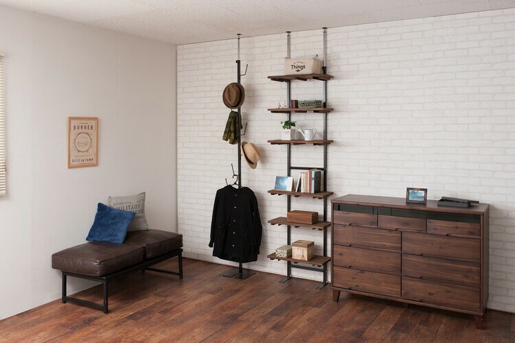 棚板を好みの位置に自由にセットできる楽しい家具。家具上の空間をラックにしたり、棚板を追加して壁面いっぱいにディスプレイしたりと使い方は無限大!