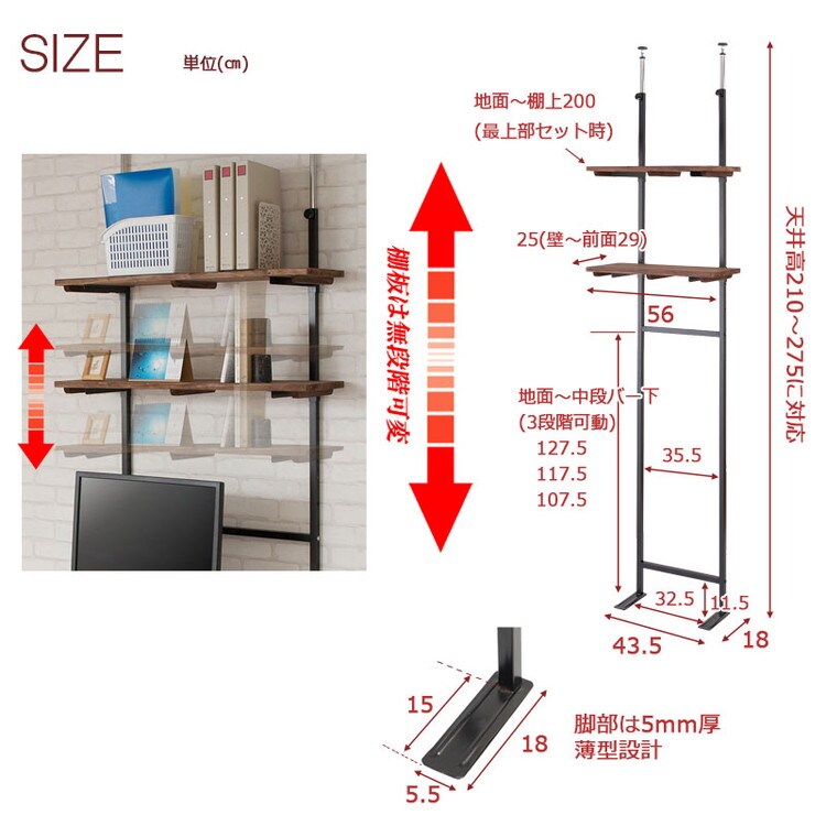 Move ディスプレイラック 幅56 突っ張り 壁面収納 無段階調整 オープンラック 幅56 シェルフ つっぱり棚 収納棚 収納ラック オープンラック 壁面収納 おしゃれ 壁面ラック ディスプレイラック【送料無料】