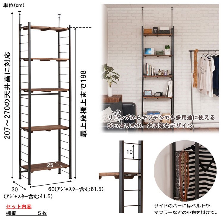 本体:(約)幅60(アジャスター含む61.5)×奥行30(アジャスター含む31.5)×高さ207~270cm