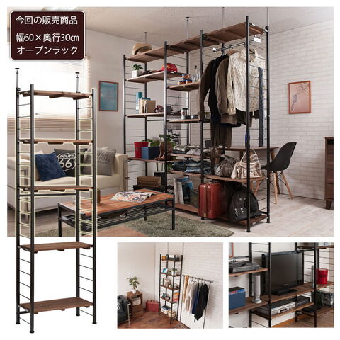 Radi オープンラック 幅60 奥行30 ブラウン ブラック オープンラック ワードローブ ヴィンテージ 壁面ラック 棚 つっぱり 薄型 収納棚 ディスプレイラック 店舗什器 カフェ【送料無料】