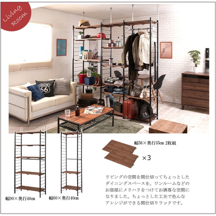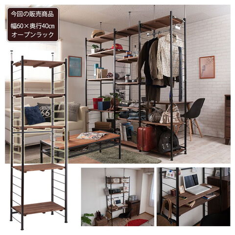 Radi オープンラック 幅60 奥行40 ブラウン ブラック オープンラック ワードローブ ヴィンテージ 壁面ラック 棚 つっぱり 薄型 収納棚 ディスプレイラック 店舗什器 カフェ【送料無料】