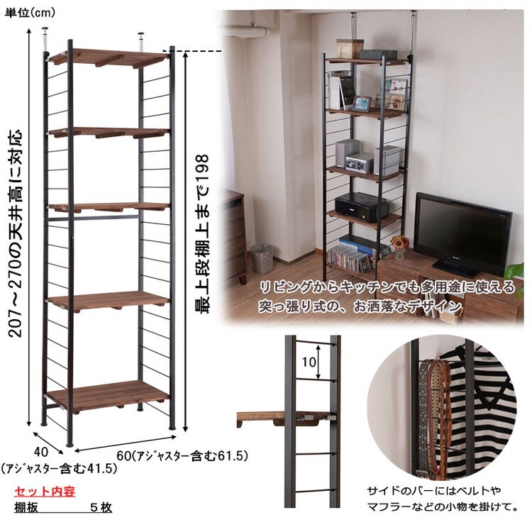 本体:(約)幅60(アジャスター含む61.5)×奥行40(アジャスター含む41.5)×高さ207~270cm