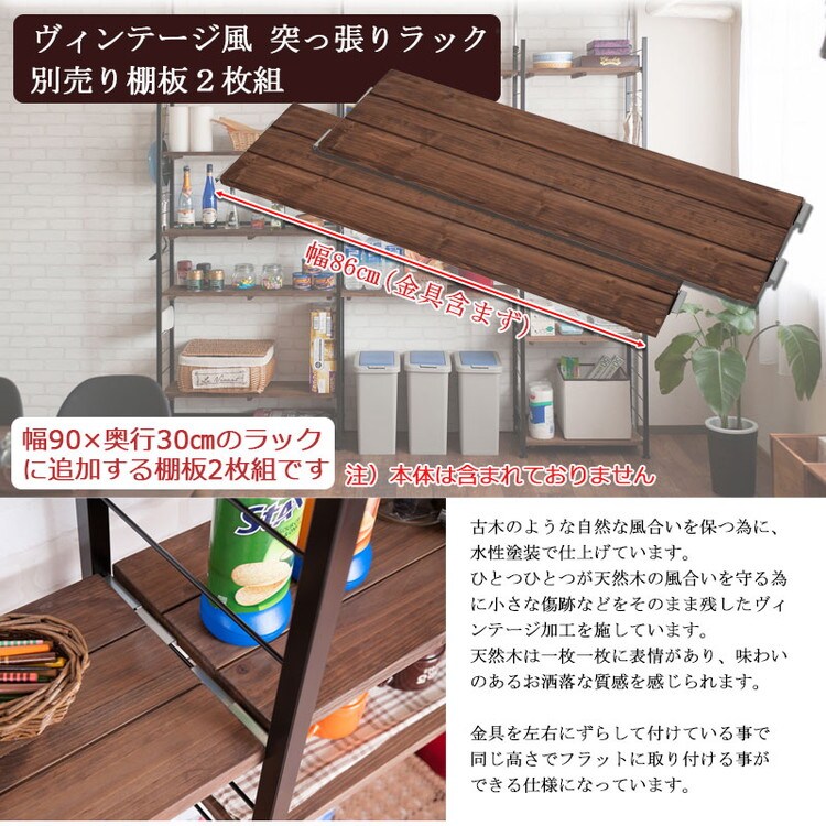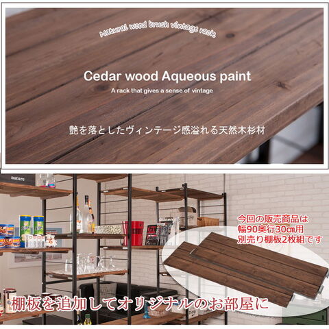 Radi ラック追加用棚板 幅90 奥行30 ブラウン ブラック オープンラック ワードローブ ヴィンテージ 壁面ラック 棚 つっぱり 薄型 収納棚 ディスプレイラック 店舗什器 カフェ【送料無料】