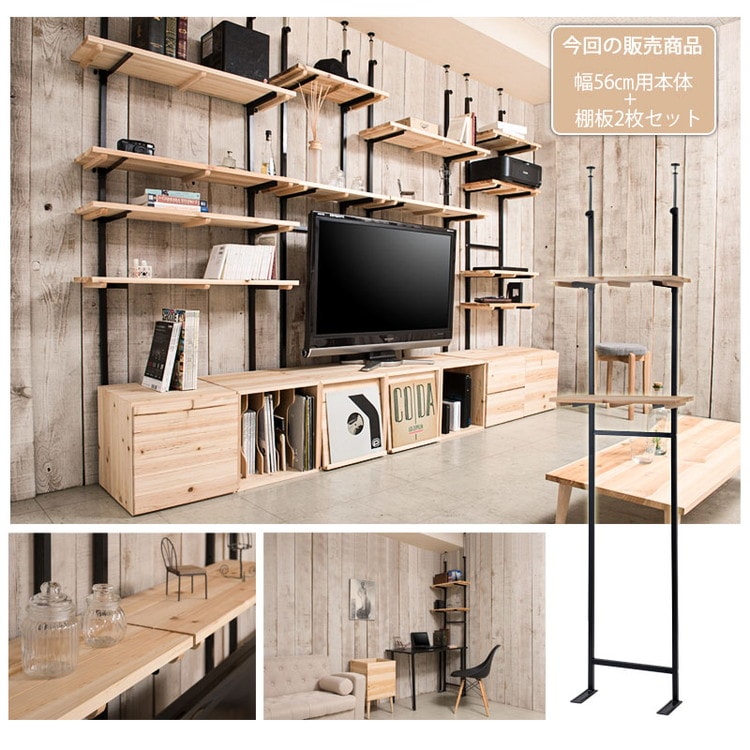 Material オープンラック 幅56 無段階調整 2枚棚 幅56 シェルフ プロジェクター台 つっぱり棚 つっぱりラック 収納棚 収納ラック オープンラック 壁面収納 壁面ラック 薄型 ディスプレイラック【送料無料】