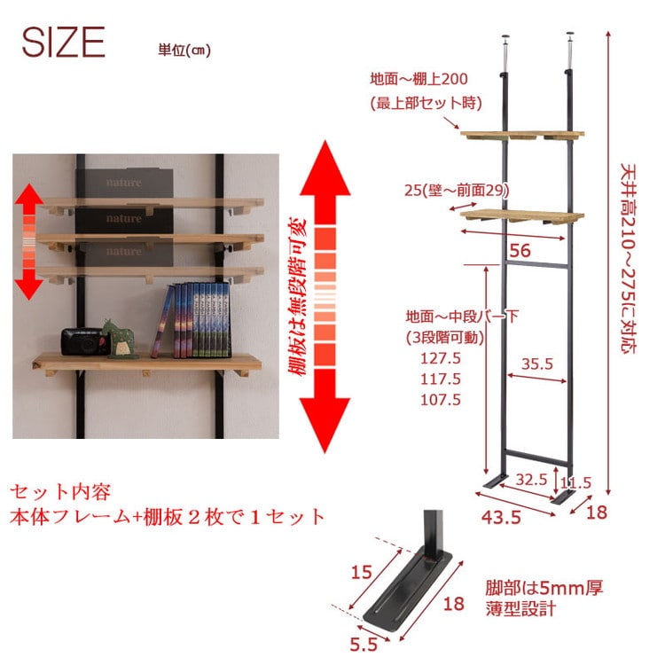 本体:(約)幅56×奥行29×高さ210~275cm