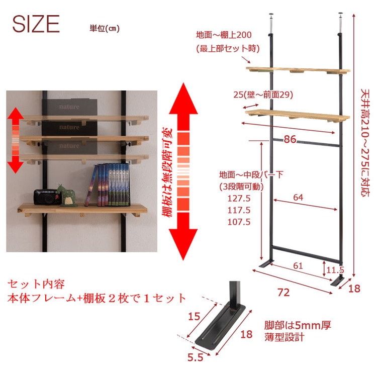 本体:(約)幅86×奥行29×高さ210~275cm