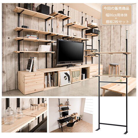 Material オープンラック 幅86 無段階調整 2枚棚 幅86 シェルフ プロジェクター台 つっぱり棚 つっぱりラック 収納棚 収納ラック オープンラック 壁面収納 壁面ラック 薄型 ディスプレイラック【送料無料】