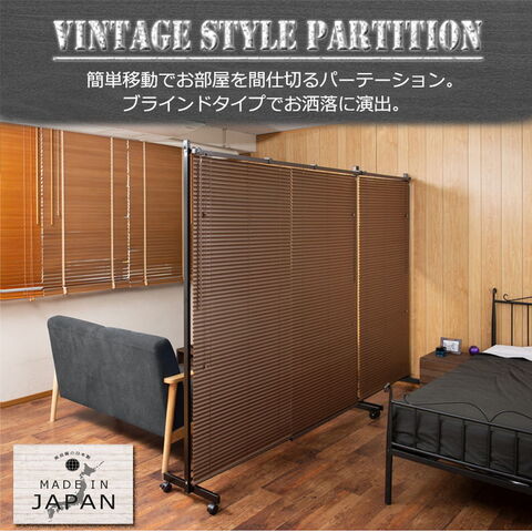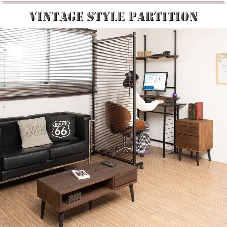 ヴィンテージやインダストリアルテイストの雰囲気にしっくりくるカラーリングはキャスターが付いて移動が楽々!調光可能なブラインド式でシャットアウトから微妙な調整まで簡易にできるパーテーションは様々な場面で活躍!