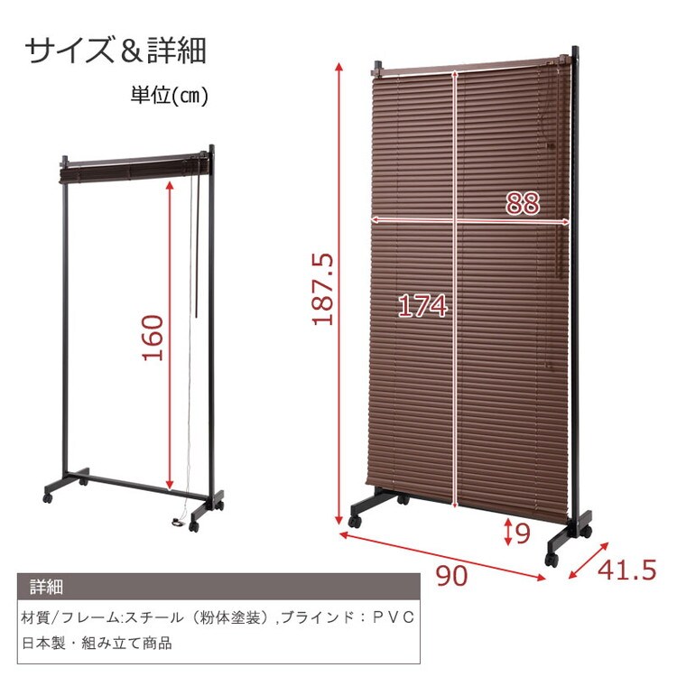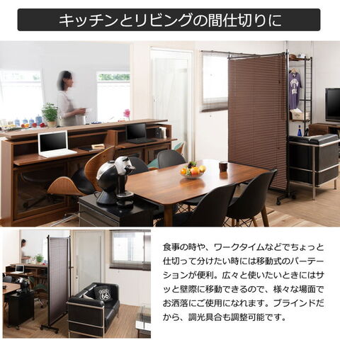 キャスター付きでお部屋を簡単に間仕切れる、おしゃれなブラインドはブラック×ブラウンのモダンシックカラーで登場!