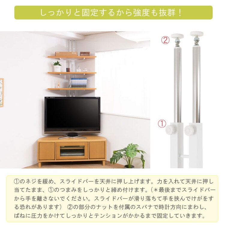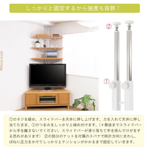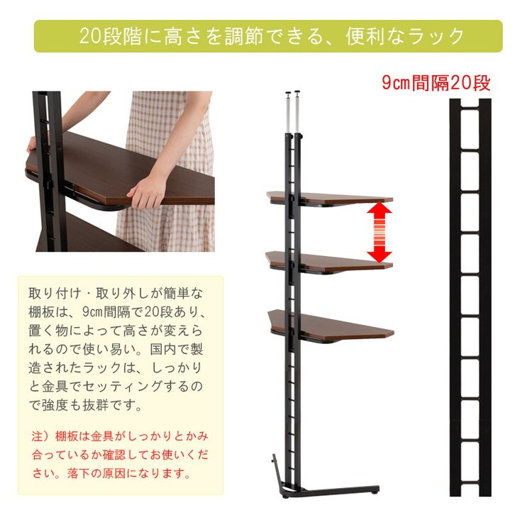 20段階に棚板の位置を調節できる突っ張り式のコーナーラックが登場!