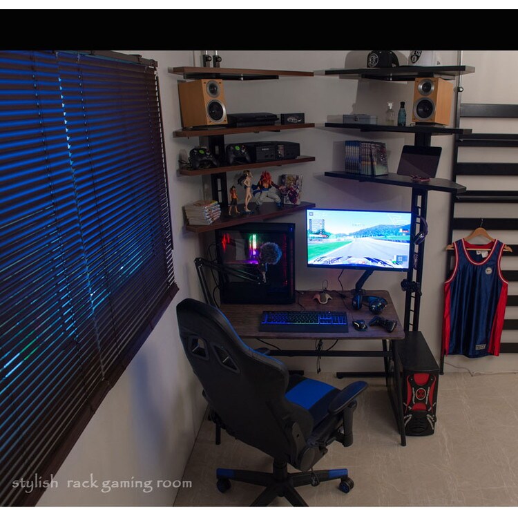 人気のGスポーツなどゲーミング部屋のコーナーに置いてモニター上をフィギュアやゲーミングアイテムでカッコよくディスプレイ。