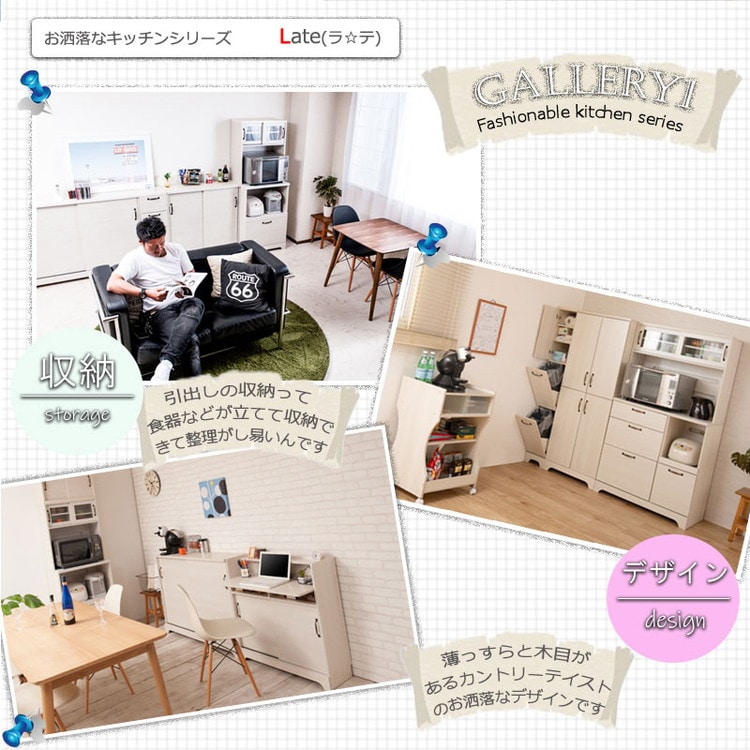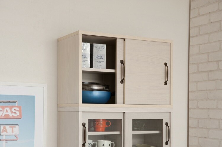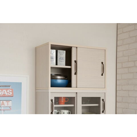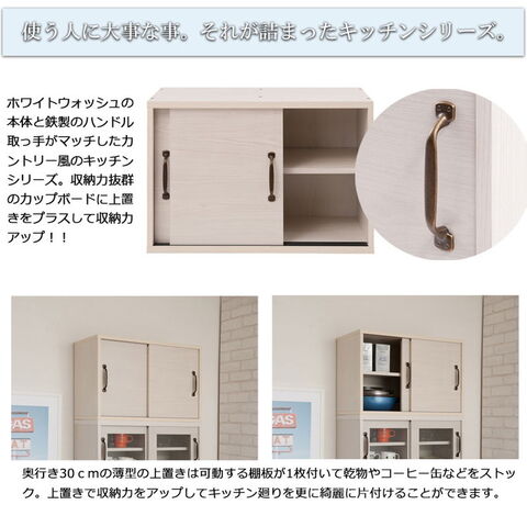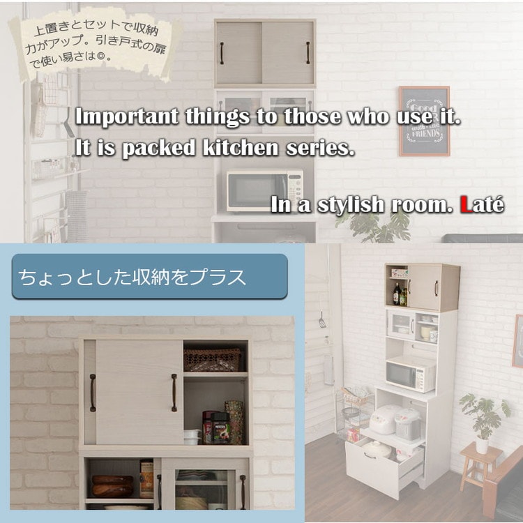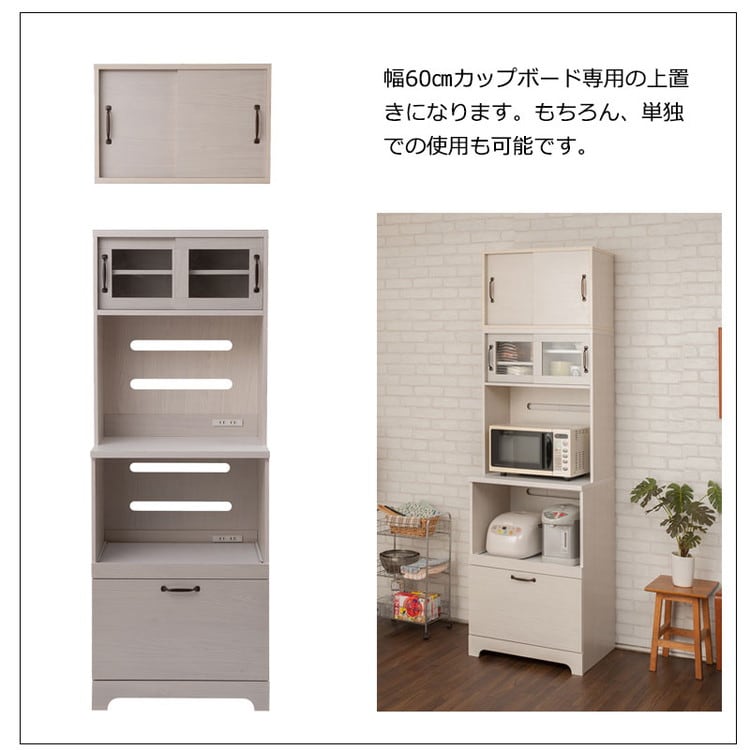 Late キッチンボード用上置き 幅60 ホワイト 木目 カップボード 食器棚 レンジ台 レンジボード ラック 引き出し 大容量 キッチンラック 家電収納 収納家具 引き戸【送料無料】