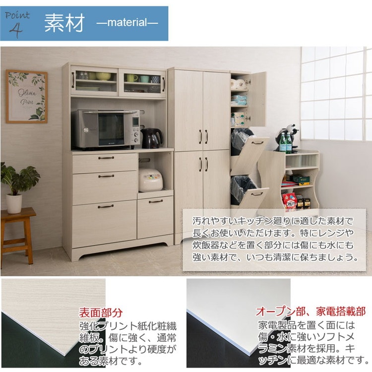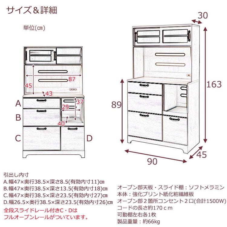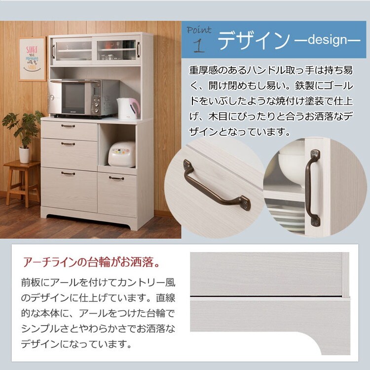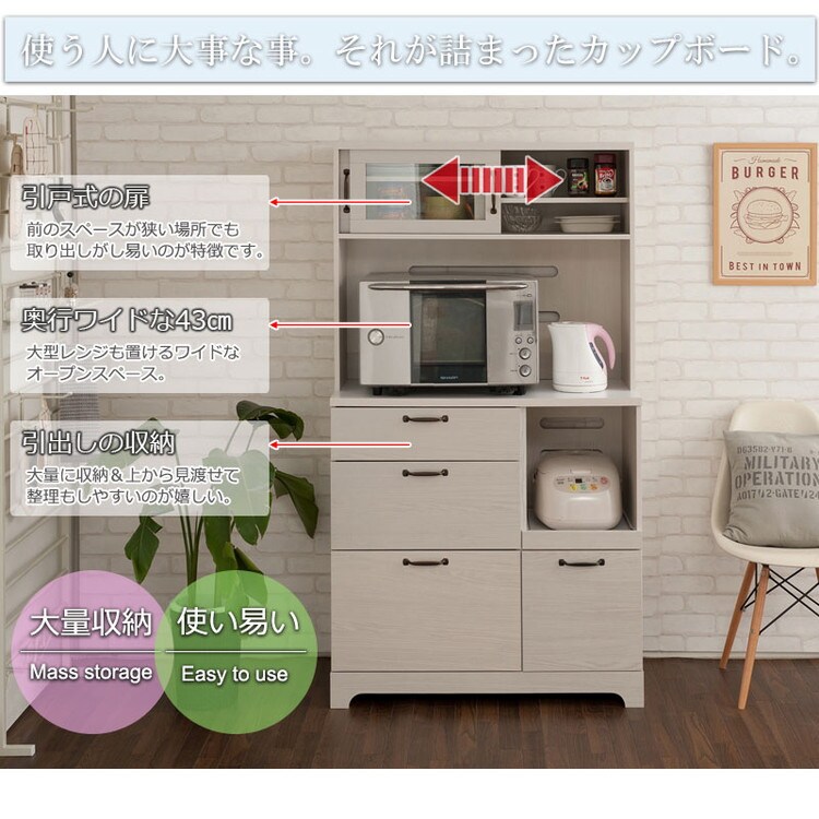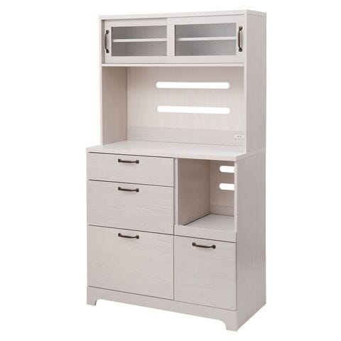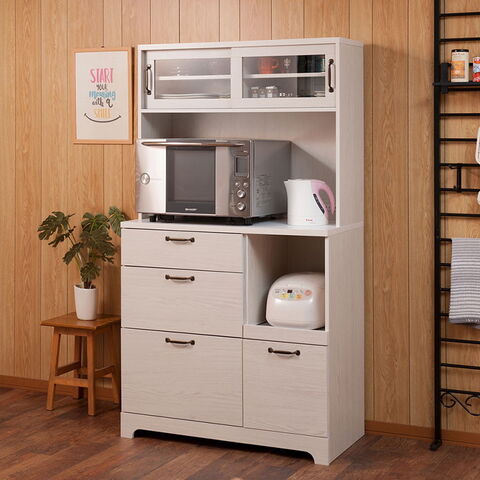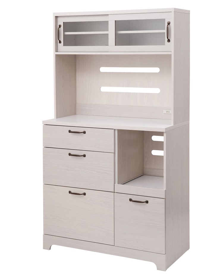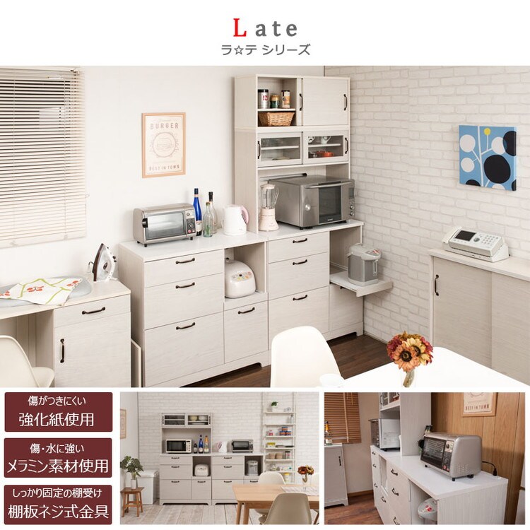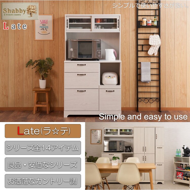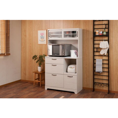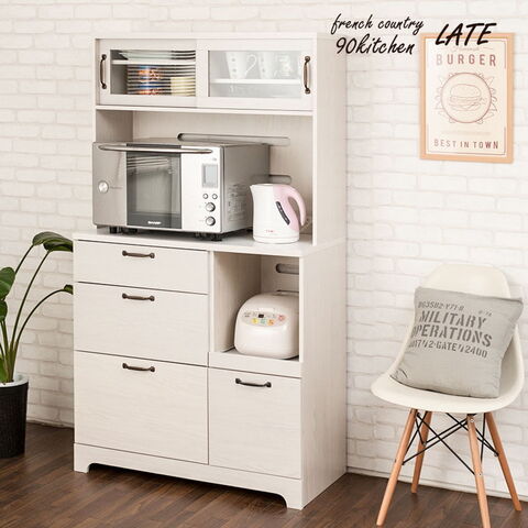Late キッチンボード 幅90 高さ163 ホワイト 木目 カップボード 食器棚 レンジ台 レンジボード ラック 引き出し 大容量 キッチンラック 家電収納 収納家具 引き戸 引戸【送料無料】