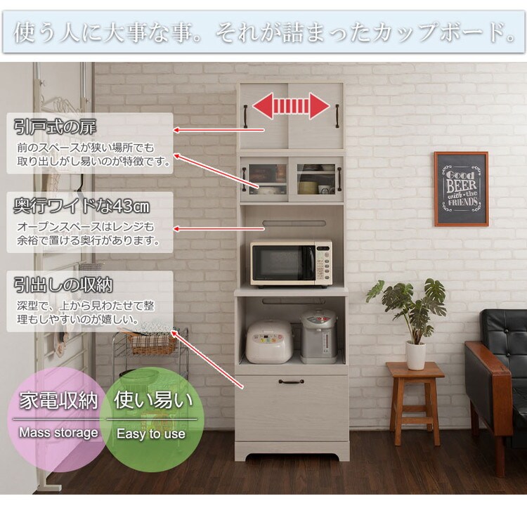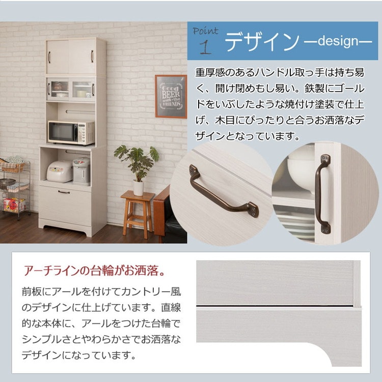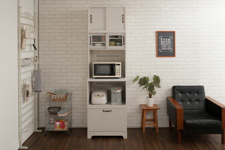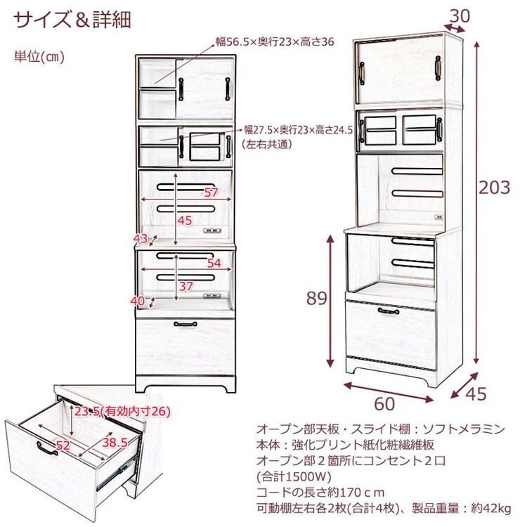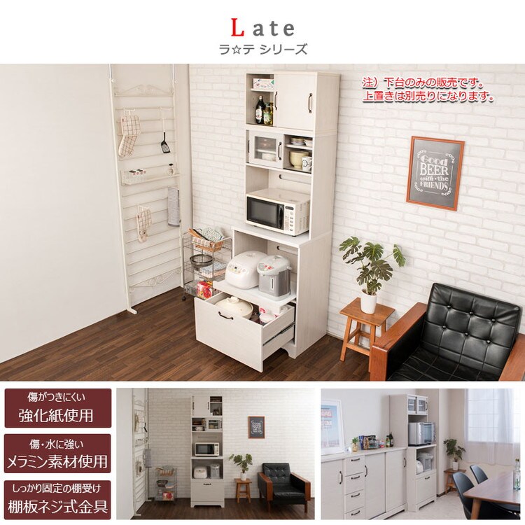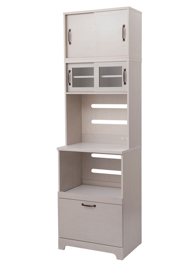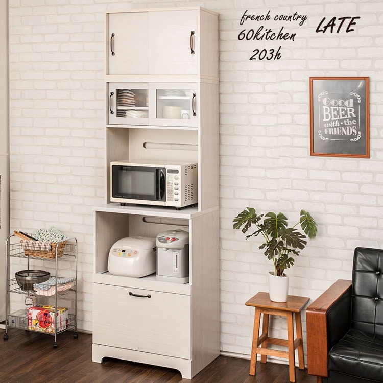 Late キッチンボード+上置き 幅60 高さ203 ホワイト 木目 カップボード 食器棚 レンジ台 レンジボード ラック 引き出し 大容量 キッチンラック 家電収納 収納家具 引き戸 引戸【送料無料】