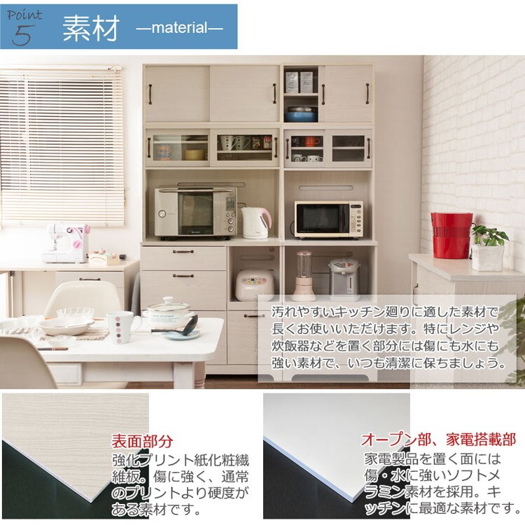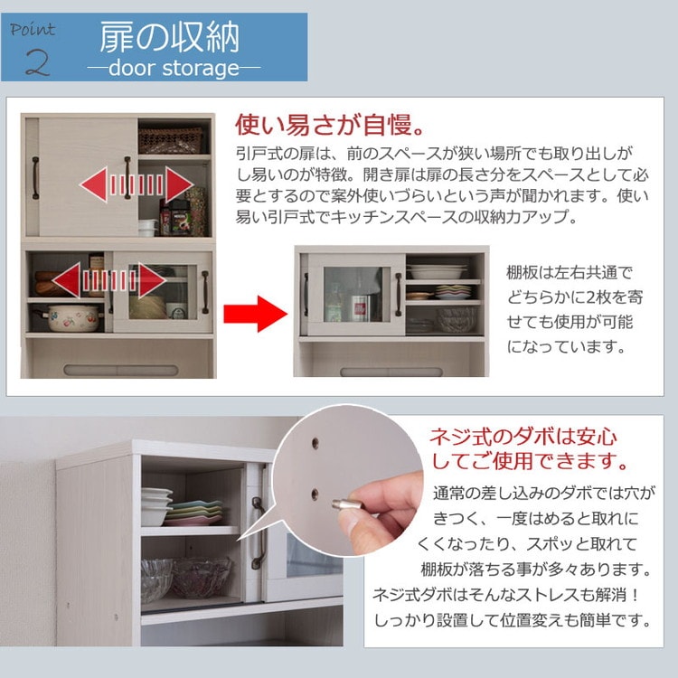 さらに収納を追加したい方に上置きも取りそろえ、間仕切りにも使えるカウンターやカウンター下・リビングボードとして薄型引戸キャビネットもラインナップ。