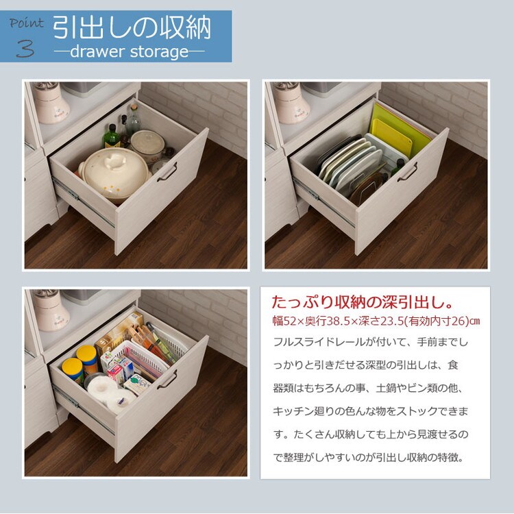 引出し内寸:(約)幅52×奥行38.5×深さ23.5(有効26)cm