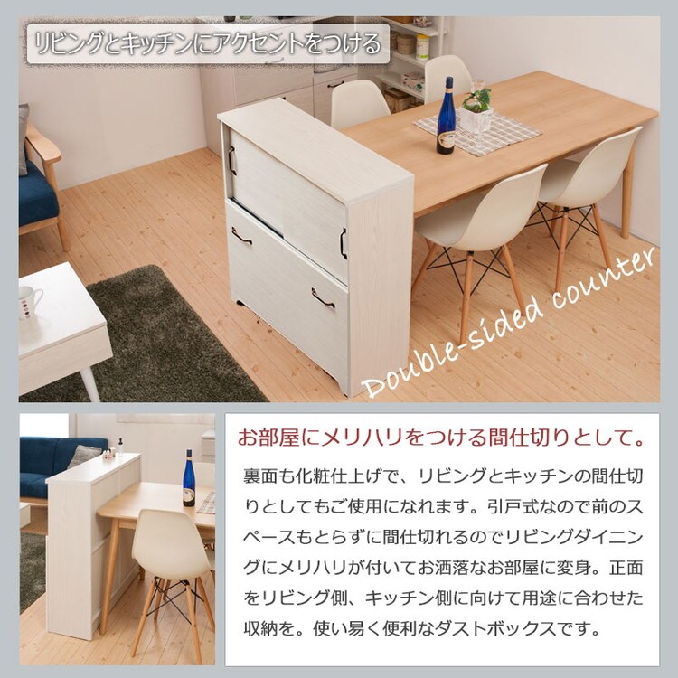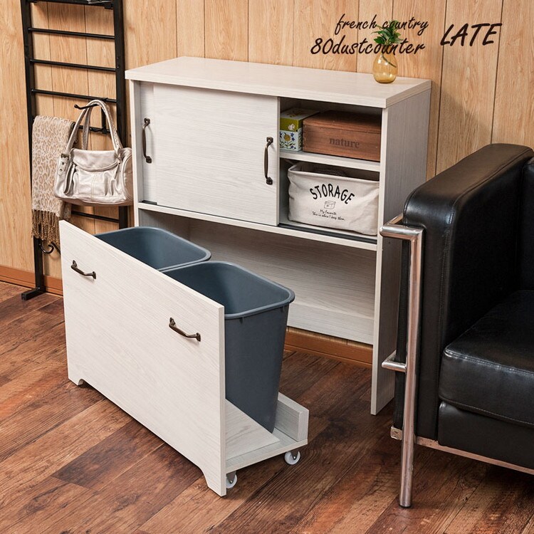 Late ダストボックス 幅80 ホワイト 木目 ごみ箱 ゴミ箱 2分別 キッチン用品 収納 ストック収納 分別ダストBOX 台所用 ホワイト カントリー調 フレンチカントリー【送料無料】