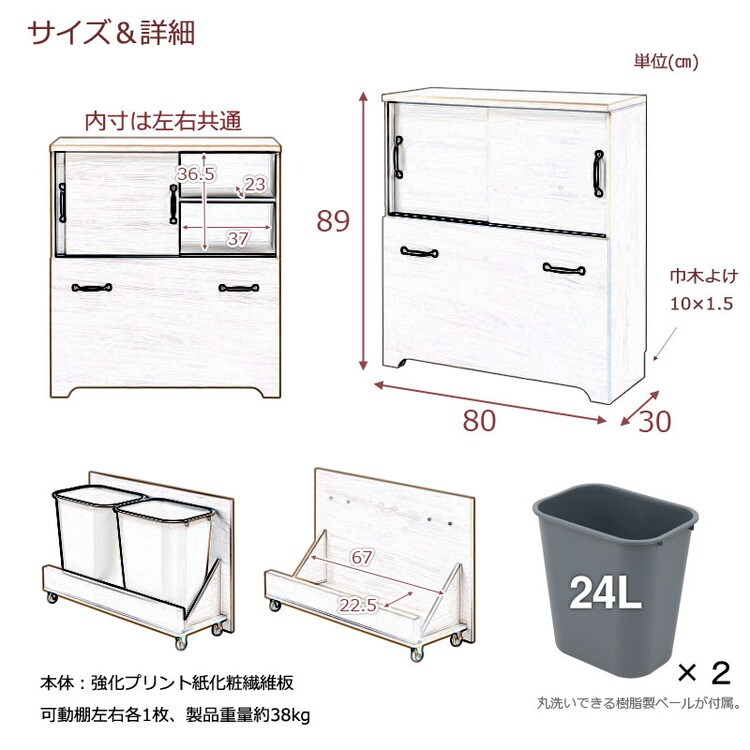引戸内寸:(約)幅(左右共通)37×奥行23×高さ36.5cm