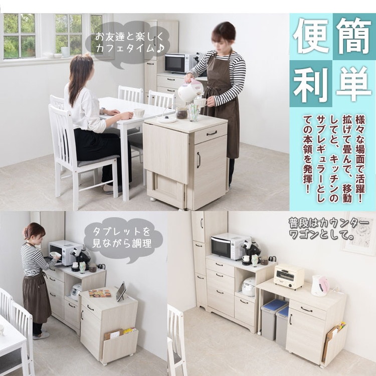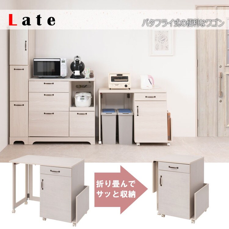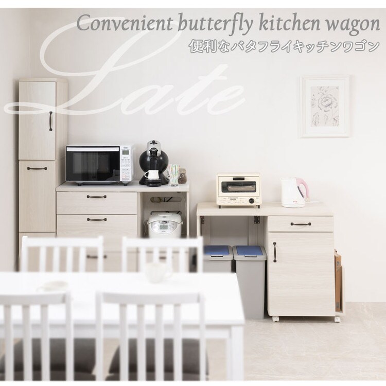 Late キッチンワゴン 幅60 幅97 ホワイト 木目 収納 作業台 レンジ台 トースター ラック おしゃれ シンプル バタフライ キッチン収納 バタフライワゴン 白 サイドワゴン キッチンカウンター【送料無料】
