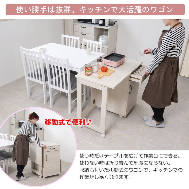 ダイニングサイドにカウンターとして、デスクとしても様々なシーンで使える便利なワゴン。