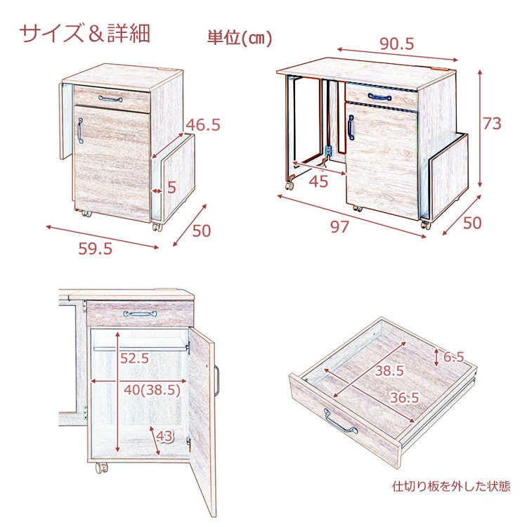 本体:(約)幅97(折り畳み時59.5)×奥行50×高さ73(キャスター含む)cm