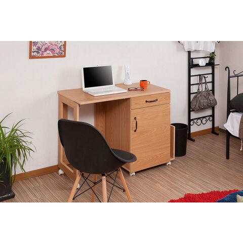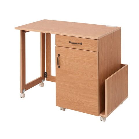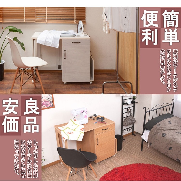 Late ミシン台 幅97 ナチュラル ワゴン 収納 デスク 折りたたみ 引出し 収納 デスク テーブル 省スペース 引き出し 作業台 PCデスク ミシンデスク 家事机 ママデスク 机 アイロン台 生地収納【送料無料】