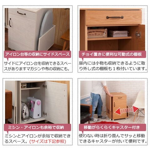 ※お手元のミシンやアイロン台などが収納できるか事前に収納部内寸をお確かめください。