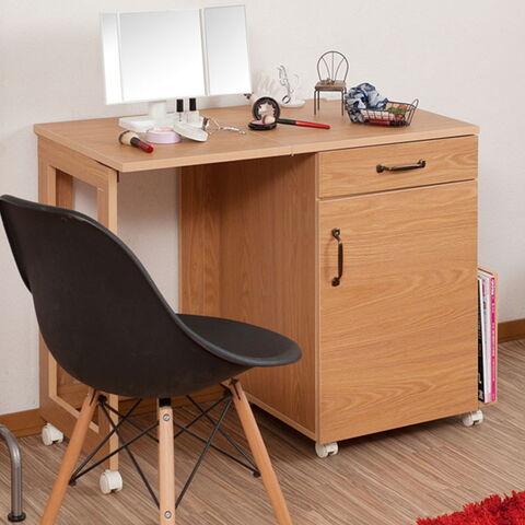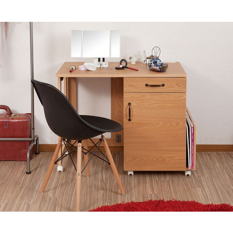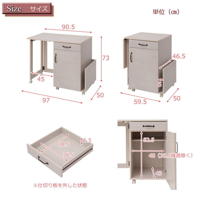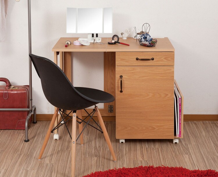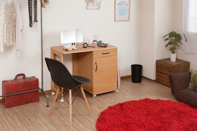 またデスクとしても様々なシーンで使える便利なワゴン。使わないときは天板をたたんで、使う時だけ出せる省スペース設計。