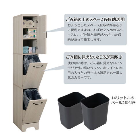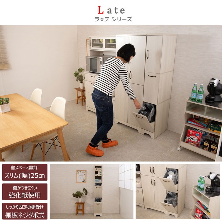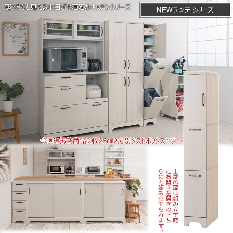Late ダストボックス 幅25 ホワイト 木目 スリム 省スペース ごみ箱 ゴミ箱 2分別 キッチン用品 スリム 分別ダストBOX 台所用 ホワイト カントリー調 フレンチカントリー【送料無料】