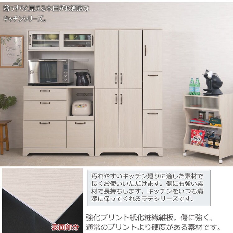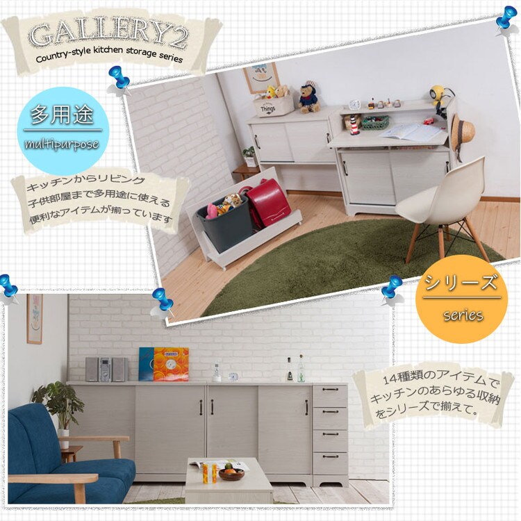 さらに収納を追加したい方に上置きも取りそろえ、間仕切りにも使えるカウンターやカウンター下・リビングボードとして薄型引戸キャビネットもラインナップ。
