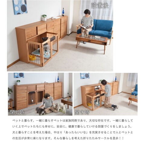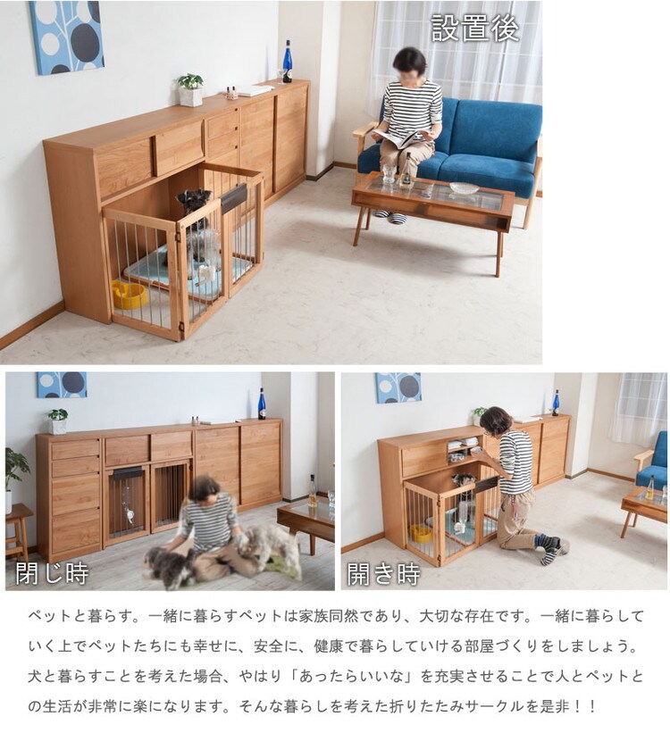 木製ワンタッチでたたんでしまえる収納型ケージ。インテリア性も兼ね備えたペット家具『すむぺっとシリーズ』。
