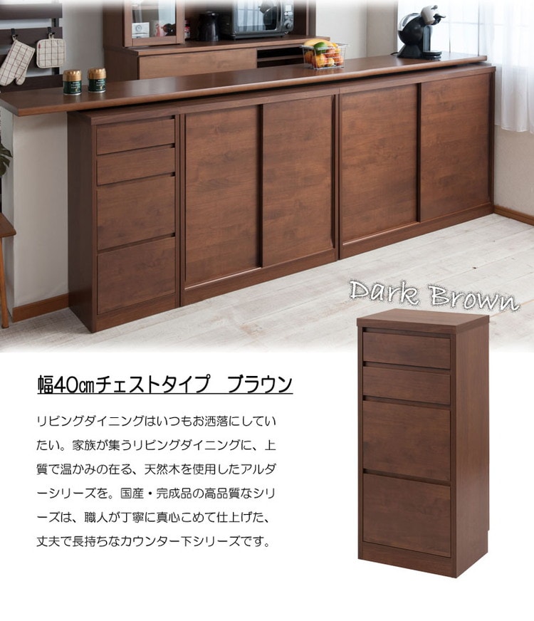 チェスト 幅40 4段 ダークブラウン ハイチェスト モダン 北欧 おしゃれ 引出し 引き出し スライドレール カウンター下 カウンター下収納 省スペース 窓下収納 キッチン キッチン収納 国産 天然木【送料無料】