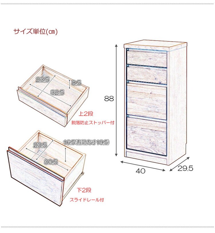 ■引出し内寸/(約)幅(浅)32.5(深)30.5×奥行23.5×深さ(浅)8.5(有効8.5)(深)16.5(有効19.5)cm