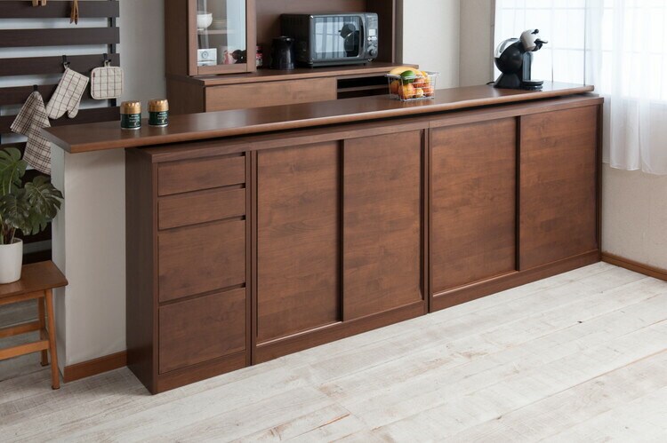 スッキリとしたデザインの扉や前板は木目の綺麗なアルダー材を使用。アルダー材特有の美しい木目をそのままいかした天然木の温かみを是非。
