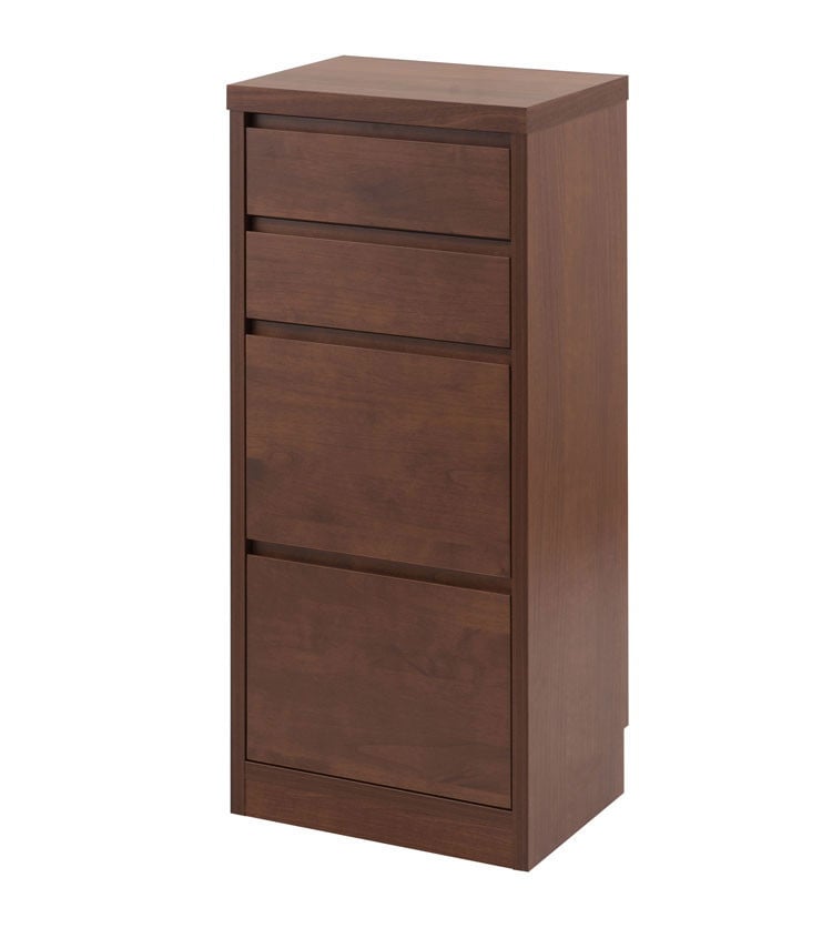 手をかけやすく、すっきりとした掘り込みの取っ手は天然木ならではの加工。細かく分かれた4杯の引出しが色んな小物を小分けして整理ができます。