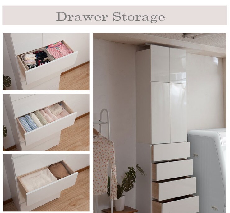 大川家具 完成品 日本製 突っ張り 薄型 ランドリーラック 扉 引き出し ランドリー 収納 白 ホワイト 国産 大容量 壁面収納 おしゃれ 北欧【送料無料】のレビュー