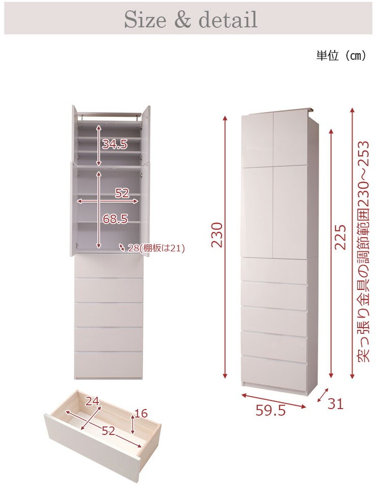 ■商品サイズ/本体:(約)幅59.5×奥行31×高さ230(立上がり扉高さ5cm含む)cm
