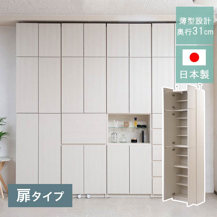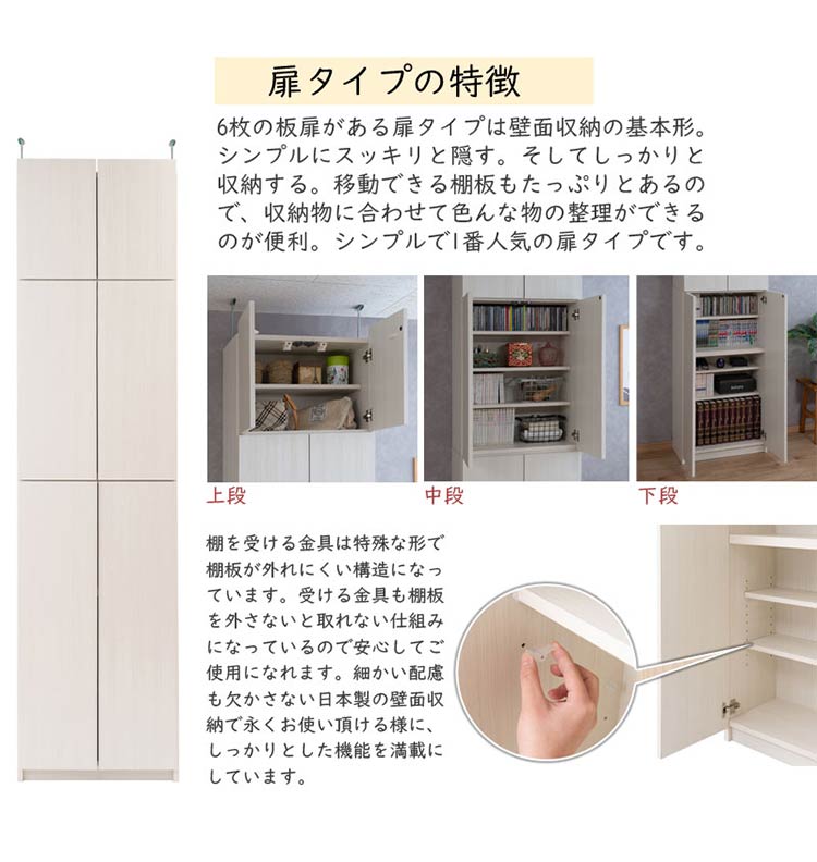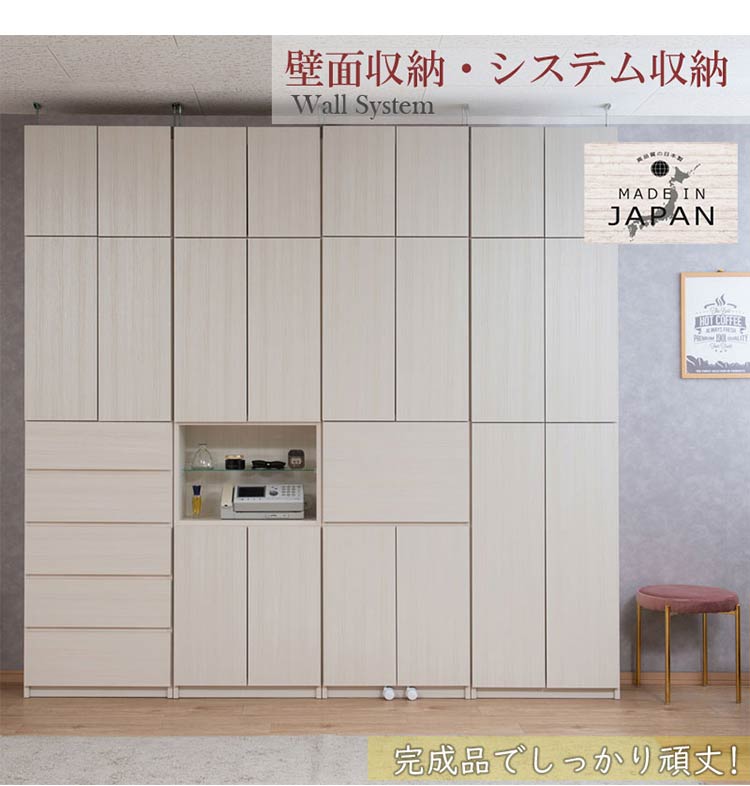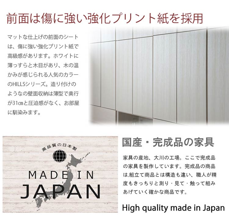 完成品 日本製 キャビネット HILLS 壁面 キャビネットタイプ ホワイト 国産 収納 オープンラック つっぱりラック 収納ラック 大容量 幅59.5 おしゃれ 木目調 白 地震【送料無料】