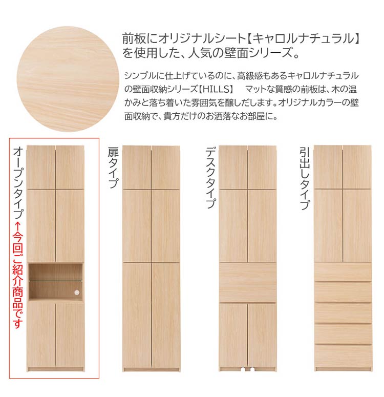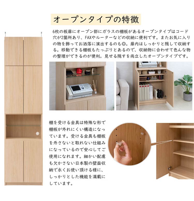 完成品 日本製 キャビネット HILLS 壁面 オープンタイプ ナチュラル 国産 収納 オープンラック つっぱりラック 収納ラック 大容量 幅59.5 おしゃれ 木目調 地震【送料無料】