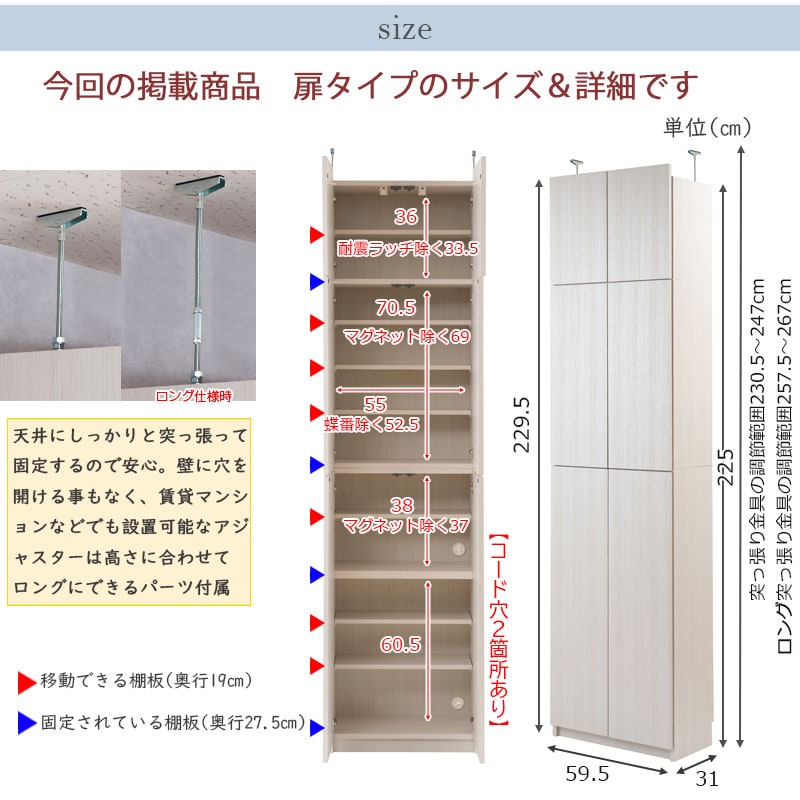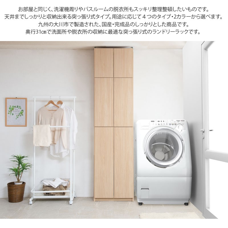 日本製 完成品 壁面 薄型 ランドリーラック 幅59.5 キャビネットタイプ ホワイト 白 つっぱり つっぱりラック 大容量 ハイタイプ おしゃれ 北欧 収納 国産 奥行き31 高さ229.5 ラック【送料無料】