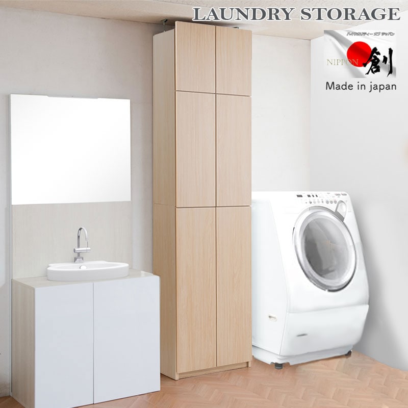 日本製、完成品、壁面、薄型、ランドリーラック、キャビネット、ナチュラル、つっぱり、つっぱりラック、大容量、おしゃれ、北欧