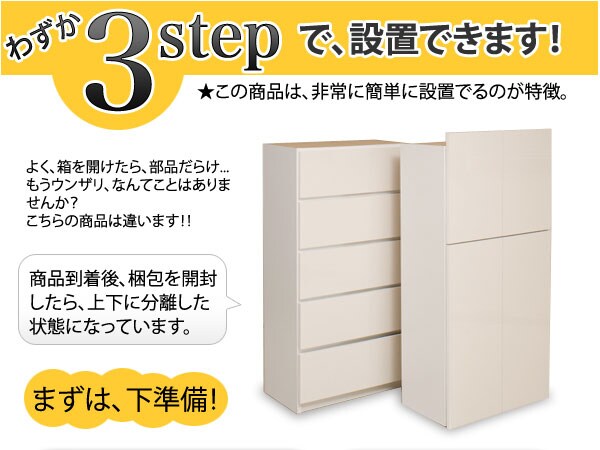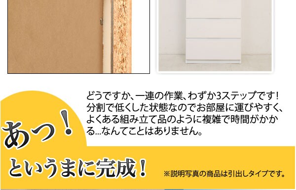 | 前板:ポリエステル化粧繊維板(艶出し加工) その他 :プリント紙化粧繊維板 |