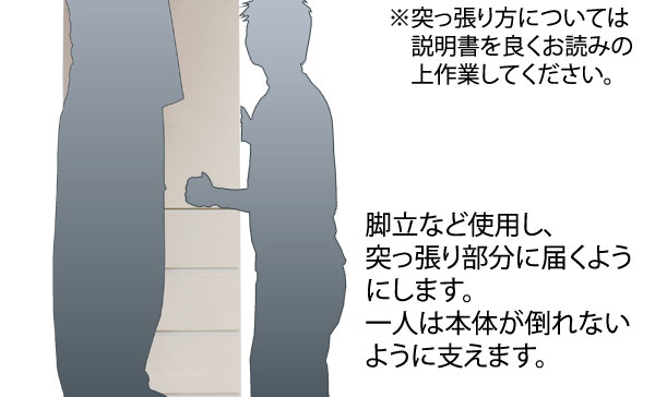 | 本体:(約)幅59.5×奥行31×高さ230(立上がり扉高さ5cm含む)cm 突っ張り高さ調節範囲:(約)230~253cm 扉内内寸:(約)幅52×奥行28×高さ(上)34.5(中)68.5(下)58cm デスク部内寸:(約)幅50.5×奥行28(デスク使用時67.5)×高さ37cm |
